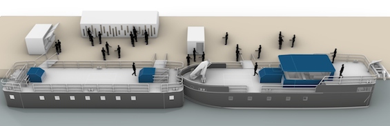 À l’horizon 2028, Dans le Sens de Barge prévoit la construction d’un prototype de centre culturel flottant et itinérant sur la Seine, baptisé BARGE.